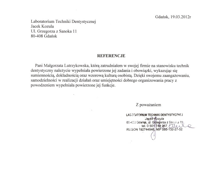 Zapraszam do zapoznania się z wystawionymi mi referencjami.
